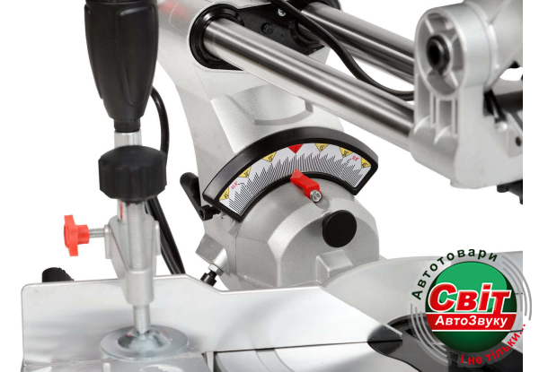 Не тільки робочий стіл, але пиляльна головка здатна відхилятися, щоб досягти різної геометрії розпилу. Пиляльний диск разом з двигуном може відхилятися вліво на 90о і вправо на 45о, що охоплює весь спектр можливих операцій. Вибране положення міцно фіксується спеціальними затискачами. Пила може виконувати подвійний розпил, який здійснюється під кутом до площини з одночасним нахилом до наполегливої шині.