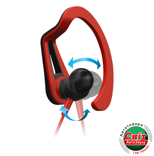Универсальный шарнир между наушниками и узлом подвески позволяет правильно устанавливать их кончики в слуховом канале любой формы и любого размера. Это обеспечивает очень удобную и надежную герметизацию для улучшения звучания и не даёт наушникам болтаться во время ваших упражнений.