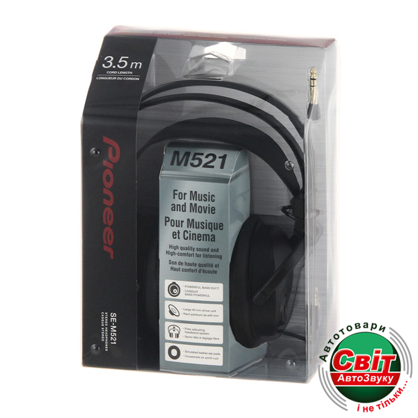 Навушники Pioneer SE-M521 BlackСозданные для любителей домашнего кинотеатра, эти наушники подходят для всех видов аудиоразвлечений в вашей жизни – будь то телевизор, DVD, CD, или ролики из Интернета. Конструкция Powerful Bass duct (так называемый мощный басовый тракт) передает динамичные, глубокие и мощные басы, предлагая оптимальные характеристики звучания. Небольшие боковые отверстия в чашках, место которых тщательно рассчитано, позволяют наушнику дышать.Мягкие кожаные амбушюры изолируя Вас от внешнего шума и, одновременно, не допуская утечки воспроизводимого звука, подарят Вам часы наслаждения музыкой с максимальным комфортом.