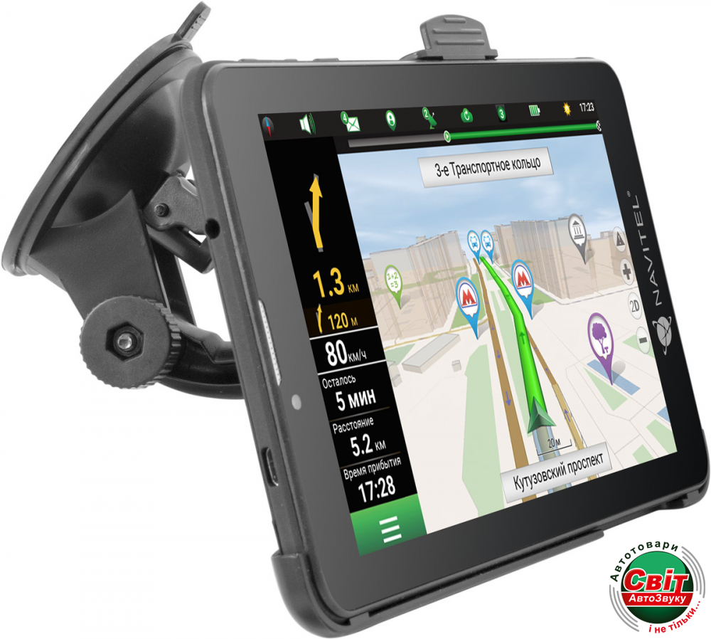 Планшет можно легко и быстро закрепить в салоне машины с помощью держателя на лобовое стекло, который входит в основной комплект поставки. Соединение со спутниками GPS устанавливается мгновенно и стабильно поддерживается в течение всего маршрута.