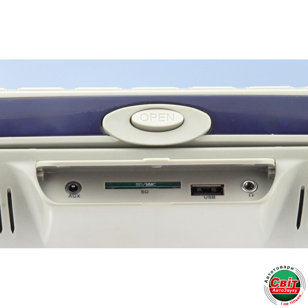 Устройство оснащено встроенным USB входом с помощью которого Вы сможете подключить флешку с любимыми фильмами, фото и музыкальными треками, а также DVD приводом который поддерживает все основные форматы - MP4/DVD/VCD/CD/MP3/JPEG/Kodak/CD-R/CD-RW. Для маленьких пассажиров есть также игровая консоль (входит в комплект) которая порадует их большим количеством игр (32bit GBA).