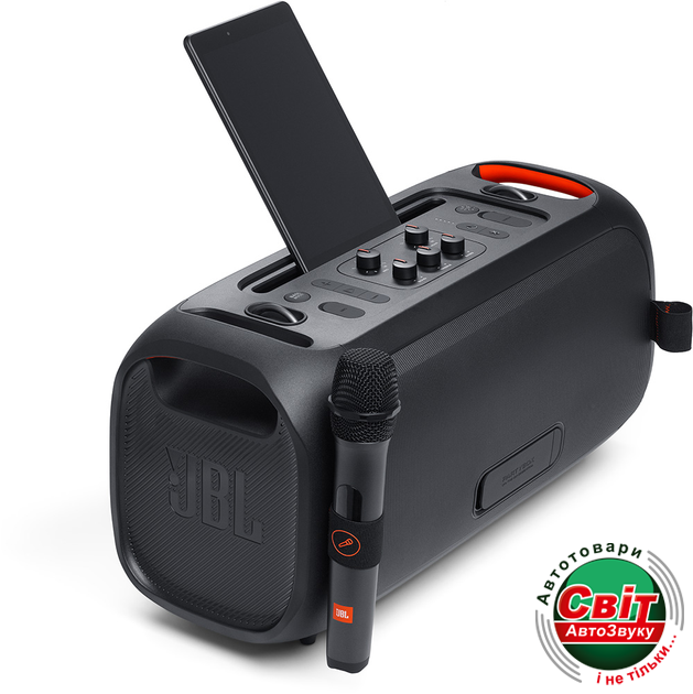 Саме час доповнити атмосферу заходу справжнім шоу талантів! Колонка обладнана роз'ємом для під'єднання мікрофона та гітари, щоб гості вечора могли заспівати або зіграти свої улюблені треки. У комплекті з акустикою JBL PartyBox On-The-Go Essential надається бездротовий мікрофон, щоб виконавець не плутався в зайвих дротах. Користувачі можуть налаштувати високі/низькі частоти та відлуння для гармонійного звучання голосу.