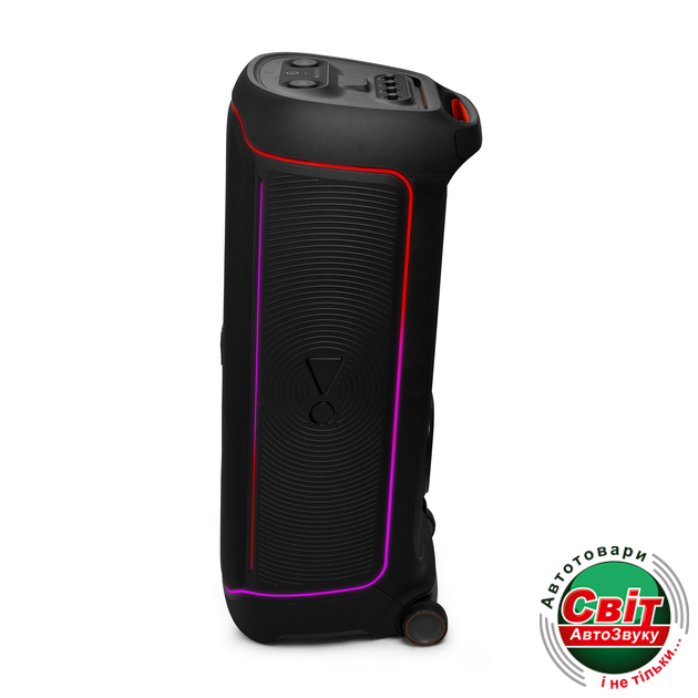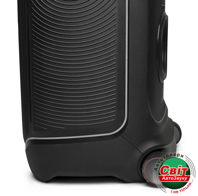 - Додаткова інформація: Світлове шоу, що працює на 5 сторонах колонки, Управління світловим шоу за допомогою мобільного додатка, Bluetooth 5.3, Можливість відтворення музики через AUX-вхід та з USB-носія, Вбудована підтримка Dolby Atmos, Можливість підключення кількох динаміків, Один вхід для мікрофона та один вхід для мікрофона або гітари, Підтримка програмою JBL One, Функція самоналаштування звуку під навколишні умови, Фірмова панель управління JBL PartyPad (звукові ефекти), Зручна ручка та міцні колеса для транспортування, Захист від бризок IPX4