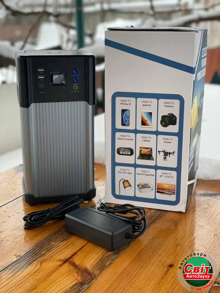 Ця портативна електростанція є потужним і зручним джерелом енергії для зовнішнього та екстреного використання. Завдяки акумуляторній батареї великої ємності вона може забезпечити до 500 Вт чистої та стабільної енергії для роботи різноманітних пристроїв, достатньо потужних для зарядки автомобільного холодильника, пилососа, дронів, мобільних телефонів, вентиляторів, ноутбуків і фотоапаратів, тощо.