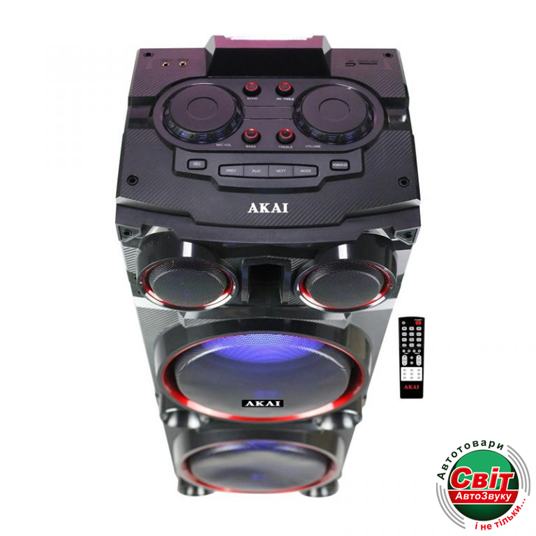 Портативна акустична система Akai ABTS-1502Акустична система AKAI ABTS-1502 является синонимом незабываемых моментов и веселья. Будь это день рождения, студенческая вечеринка или событие на открытом воздухе, это устройство будет отлично работать в любых условиях и не позволит Вам скучать! Светодиодная подсветка, меняющая цвета в такт музыке, создаст неповторимую атмосферу. Возможность управления музыкой с помощью верхней диджейской панели и пультом дистанционного управления, а также с помощью мобильного телефона при включённой функции Bluetooth.