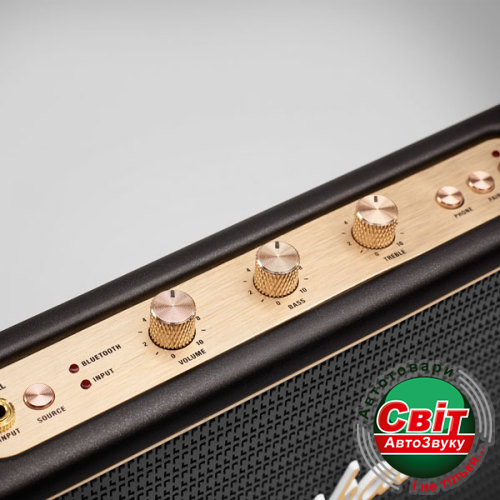 И конечно же традиционное исполнение в стиле олдскульных гитарных усилителей: аналоговые переключатели и ручки регулировок золотого цвета, металлическая решетка на динамиках с легендарным логотипом Marshall на ней и идеальные формы колонки Stockwell.