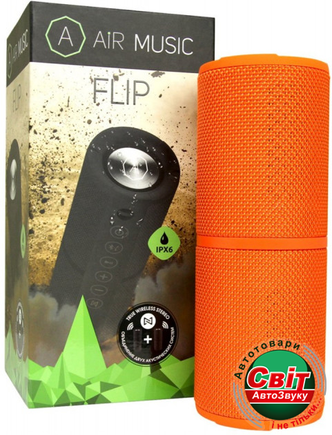 Air Music FLIP — стильная портативная акустика оригинальной формы с FM-приёмником мощностью 8 Вт. Акустика осуществляет синхронизацию с совместимыми устройствами через протокол Bluetooth 4.2 на расстоянии до 10 м.