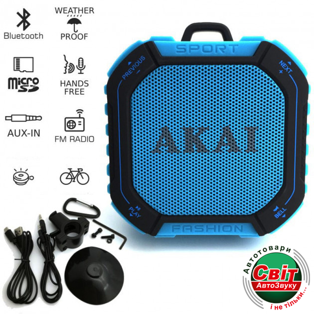 Портативна колонка Akai ABTS-B7Портативна колонка с Bluetooth Akai ABTS-B7 предлагает множество возможностей для любителей музыки! Теперь вы можете брать музыку с собой куда бы вы не направлялись! Прикрепите данное устройство к рулю вашего велосипеда и наслаждайтесь любимой музыкой, а в случае необходимости используйте устройство, чтобы посигналить. Подключайтесь к устройству по Bluetooth и наполните свою жизнь красками!