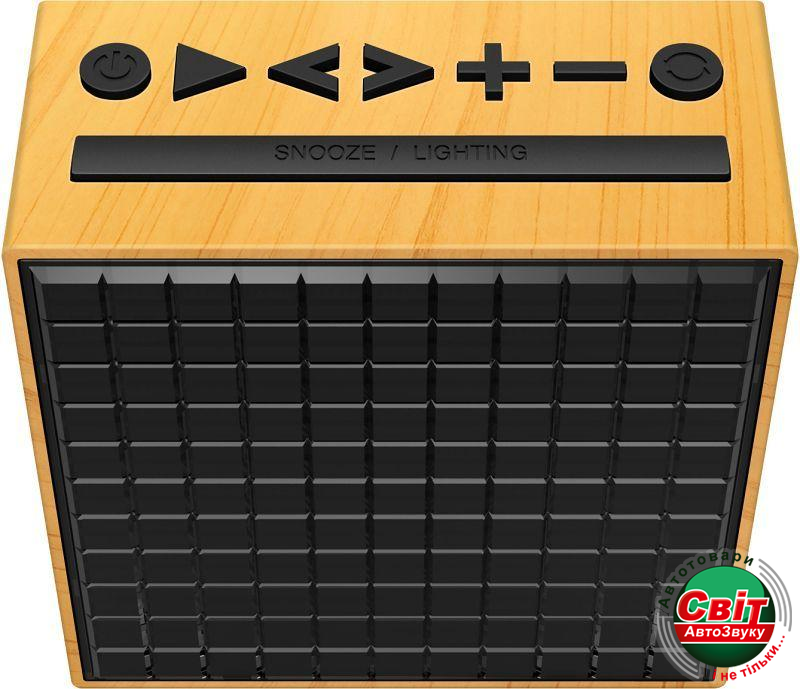Встроенная панель состоит из кнопок. Среди них: вкл./выкл., воспроизведение, перемотка треков/смена цвета светодиодов, регулировка громкости/регулировка яркости и переключение режимов.