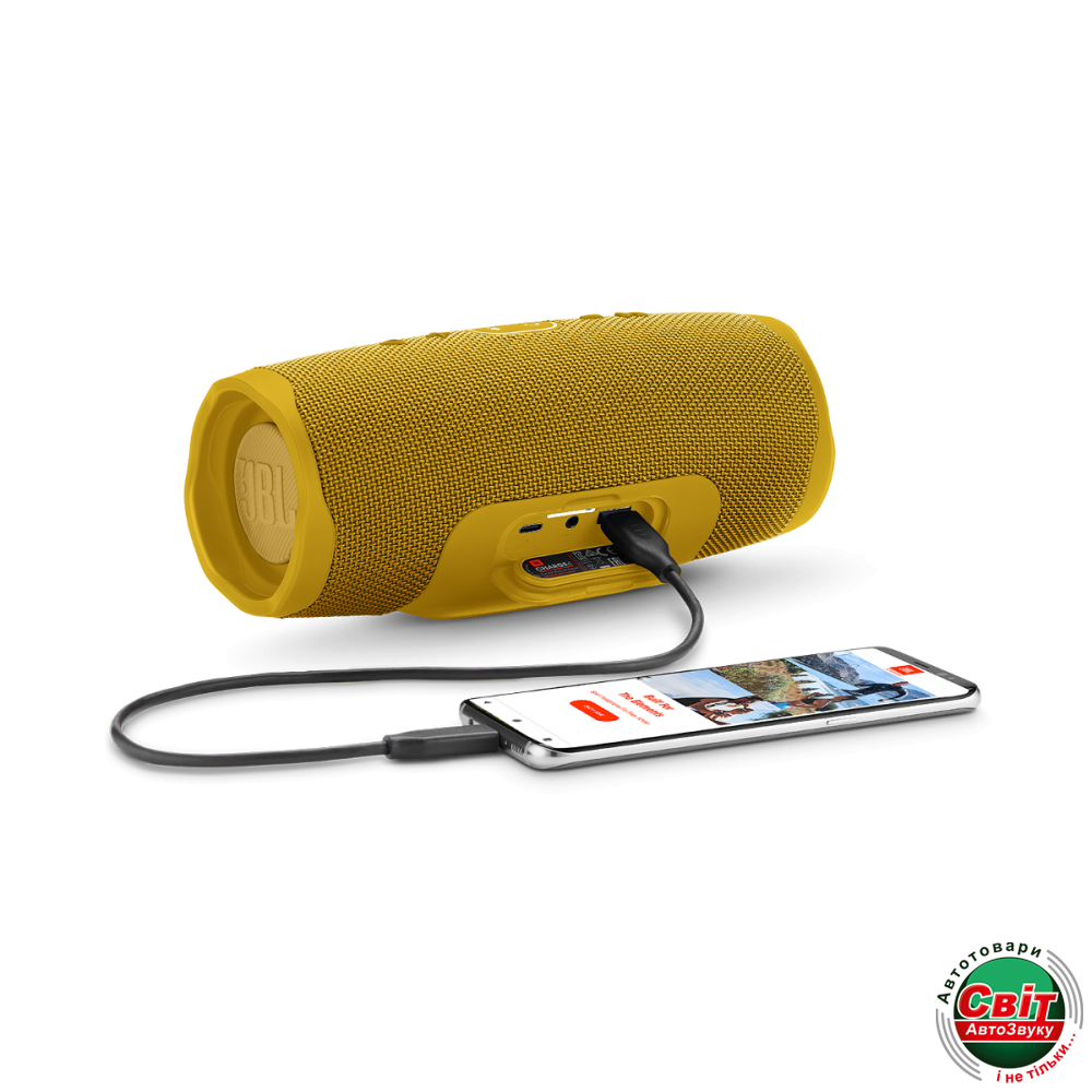 Портативна колонка JBL Charge 4 Yellow (JBLCHARGE4YEL)BL Charge 4 – беспроводная портативная акустика с мощным звуком и емкой батареей. Она оснащена драйвером особой, запатентованной конструкции, и двумя басовыми излучателями JBL, которые делают звук глубже и сильнее. Встроенный аккумулятор на 7500 мАч обеспечивает колонке до 20 часов автономной работы и позволяет заряжать от нее другие мобильные гаджеты, такие как телефон, планшет или плеер. А прочный водонепроницаемый корпус делает Charge 4 идеальным спутником на отдыхе, вечеринке или в любой поездке.