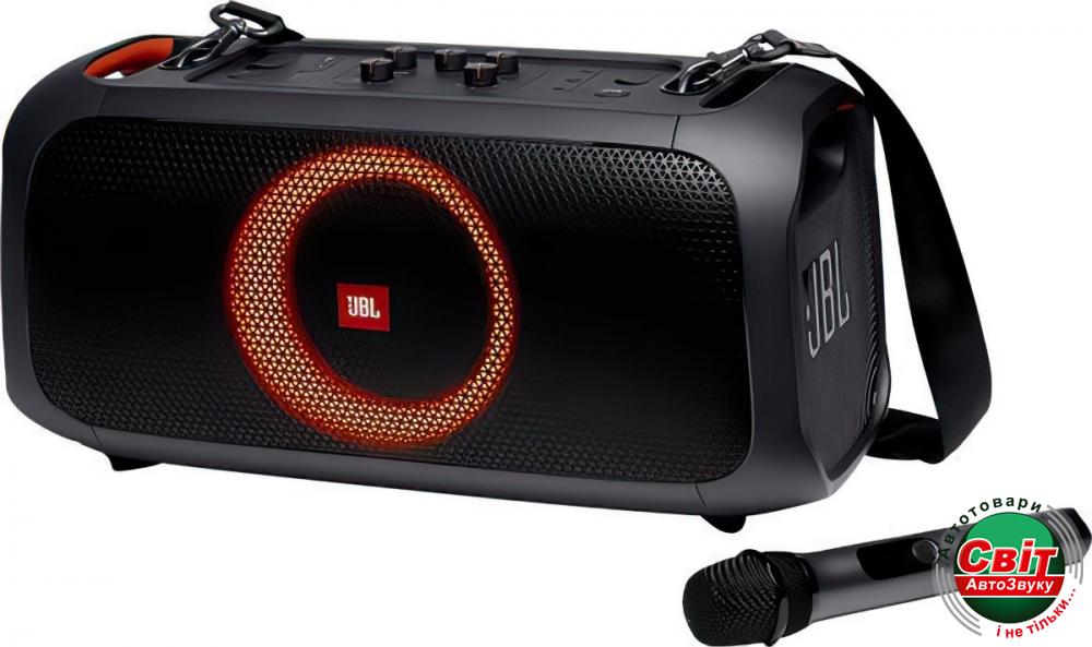 JBL у комплекті JBL PartyBox On-The-Go постачається з бездротовим мікрофоном JBL з діапазоном приймання до 10 метрів.