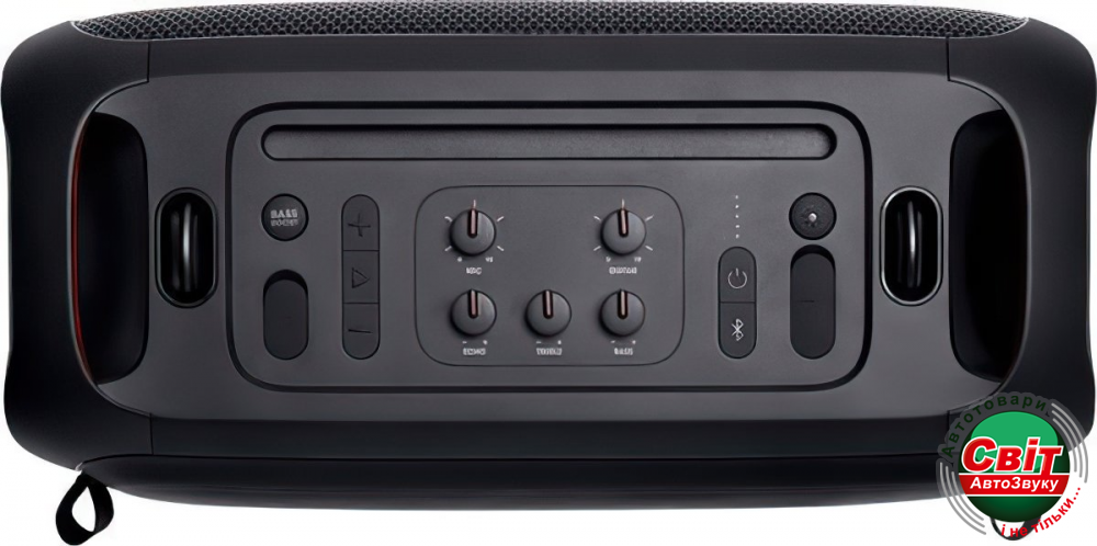 - Комплектація: Акустична система, Бездротовий мікрофон, кабель живлення, посібник користувача, Додаткові характеристики, USB-порт для відтворення/заряджання, Захист від бризок, підсвічування динаміків колонки