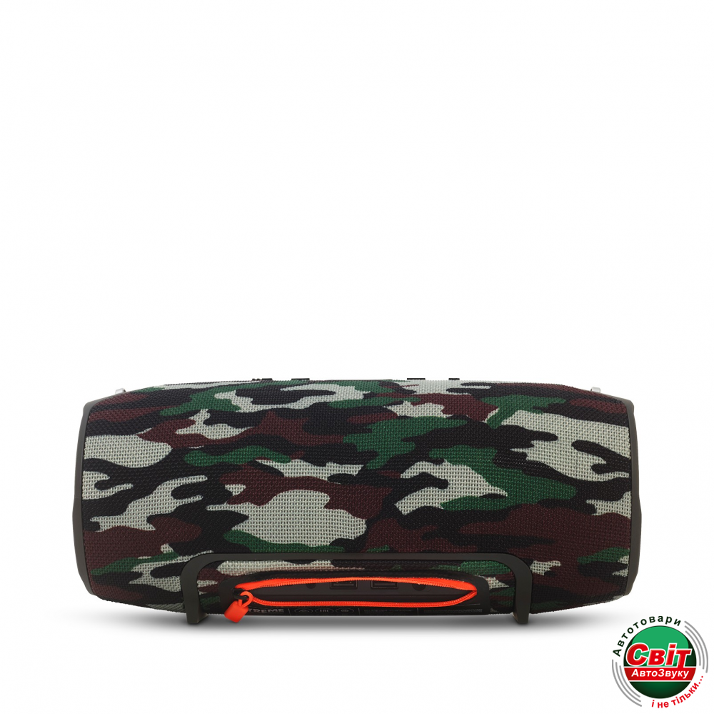 Портативна колонка JBL Xtreme камуфлированная оснащена четырьмя активными динамиками и двумя видимыми излучателями низких частот, которые в комплексе прекрасно воспроизводят мощный и качественный звук. Подключение к устройству осуществляется посредством Bluetooth 4.0 либо через AUX разъем, через стандартный разъем для наушников, что позволяет подключить ее к смартфону, планшету, ноутбуку, телевизору, проектору и другим устройствам. Девайс оснащен спикерфоном с функцией шумоподавления, которая обеспечивает четкую связь при звонках.