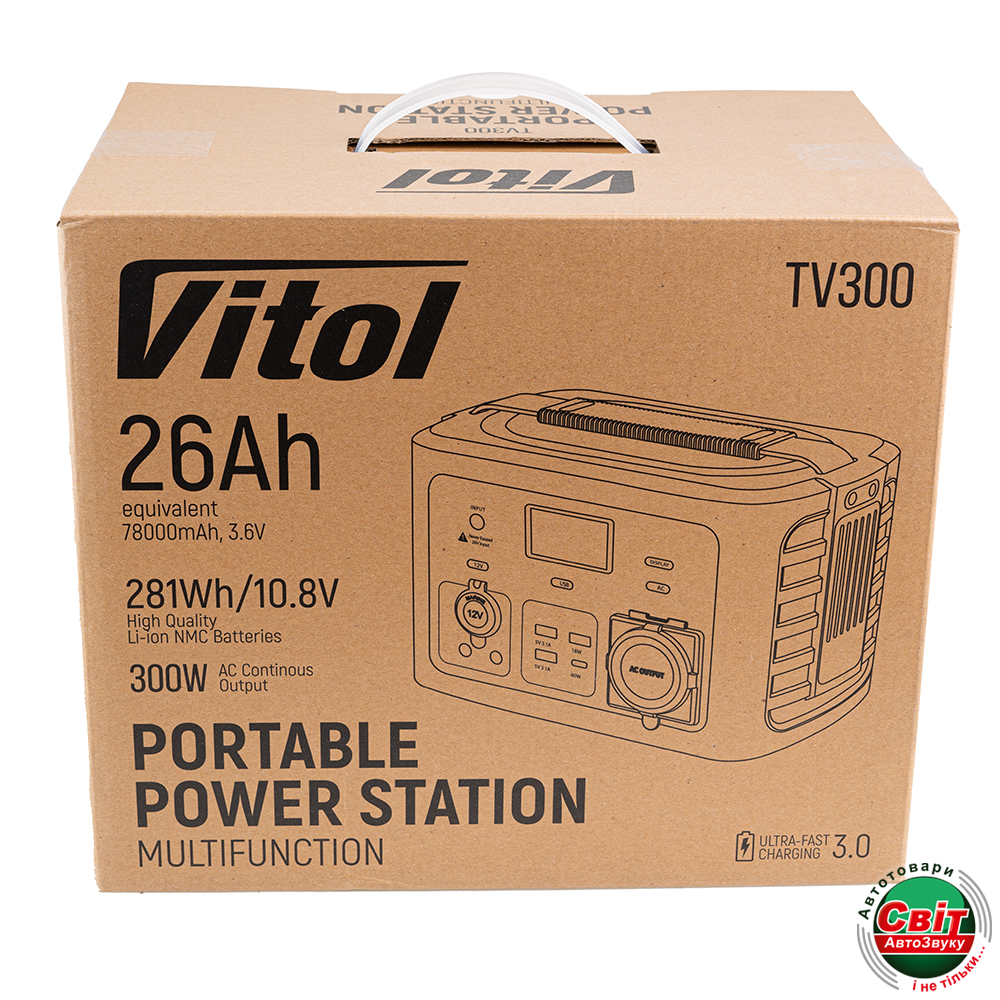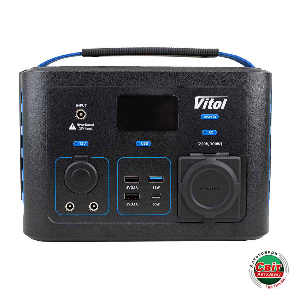 PowerStation Vitol TV300 забезпечить вам зарядку мобільних пристроїв, ноутбуків, портативних холодильників і т.д.
