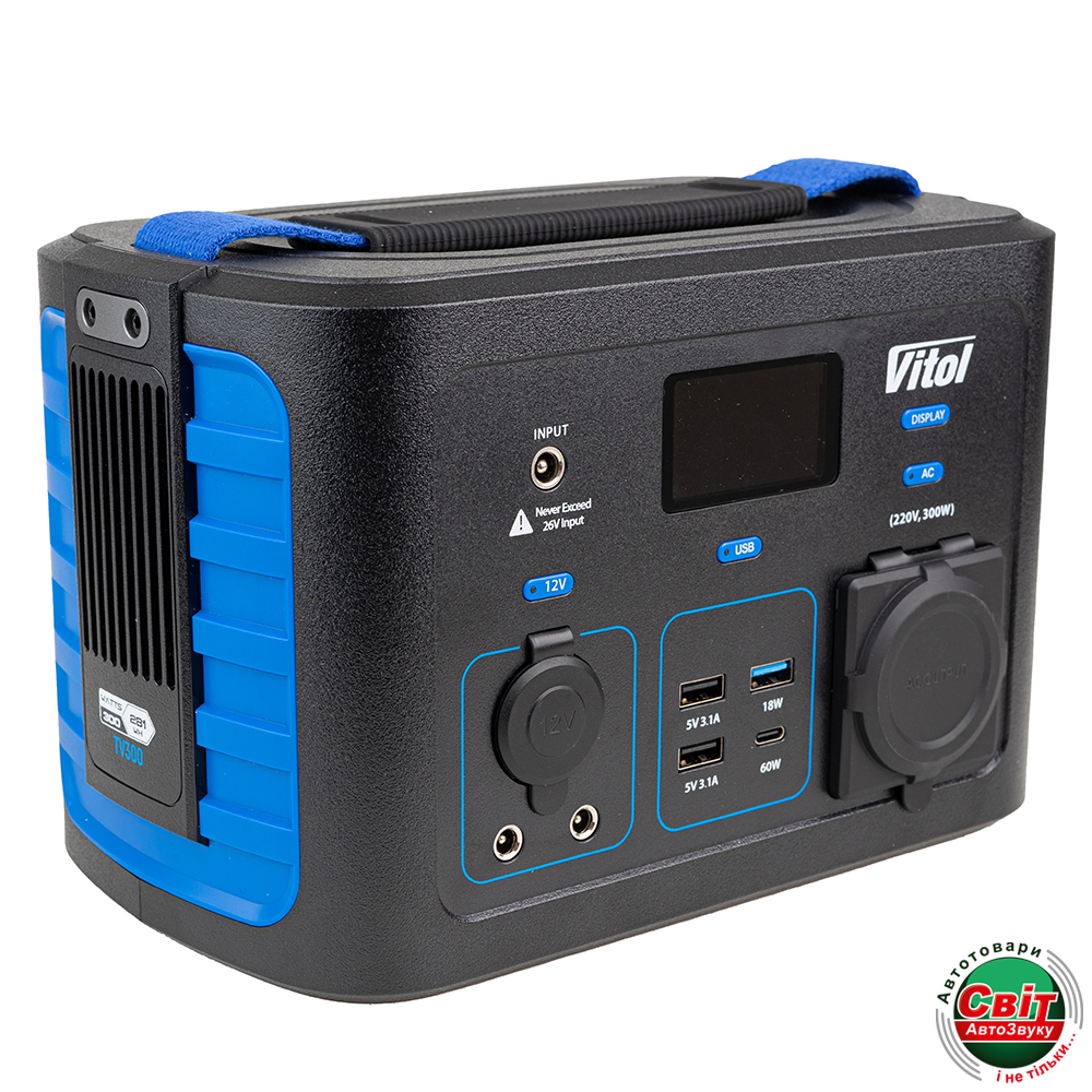 Фото Портативне джерело живлення Vitol TV300, 220В/300Вт/Li-ion NCM 281Вт/год, чистий. сінус