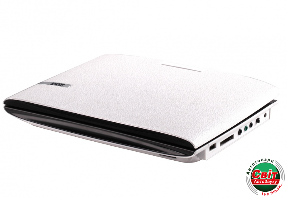 Портативний DVD-плеєр Mystery MPS-914 WhiteПортативный DVD с поворотным 9” дюймовым LCD дисплеем поставляется в 4х цветах: черном, белом, красном и серебристом. Отдельно стоит упомянуть необычный дизайн новинки: снаружи корпус текстурирован под кожу, что сразу привлекает внимание, внутренние части из качественного черного пластика с глянцевым покрытием «рояльный лак», а крышка отсека для диска и панель управления выполнена с покрытием «тертый алюминий».