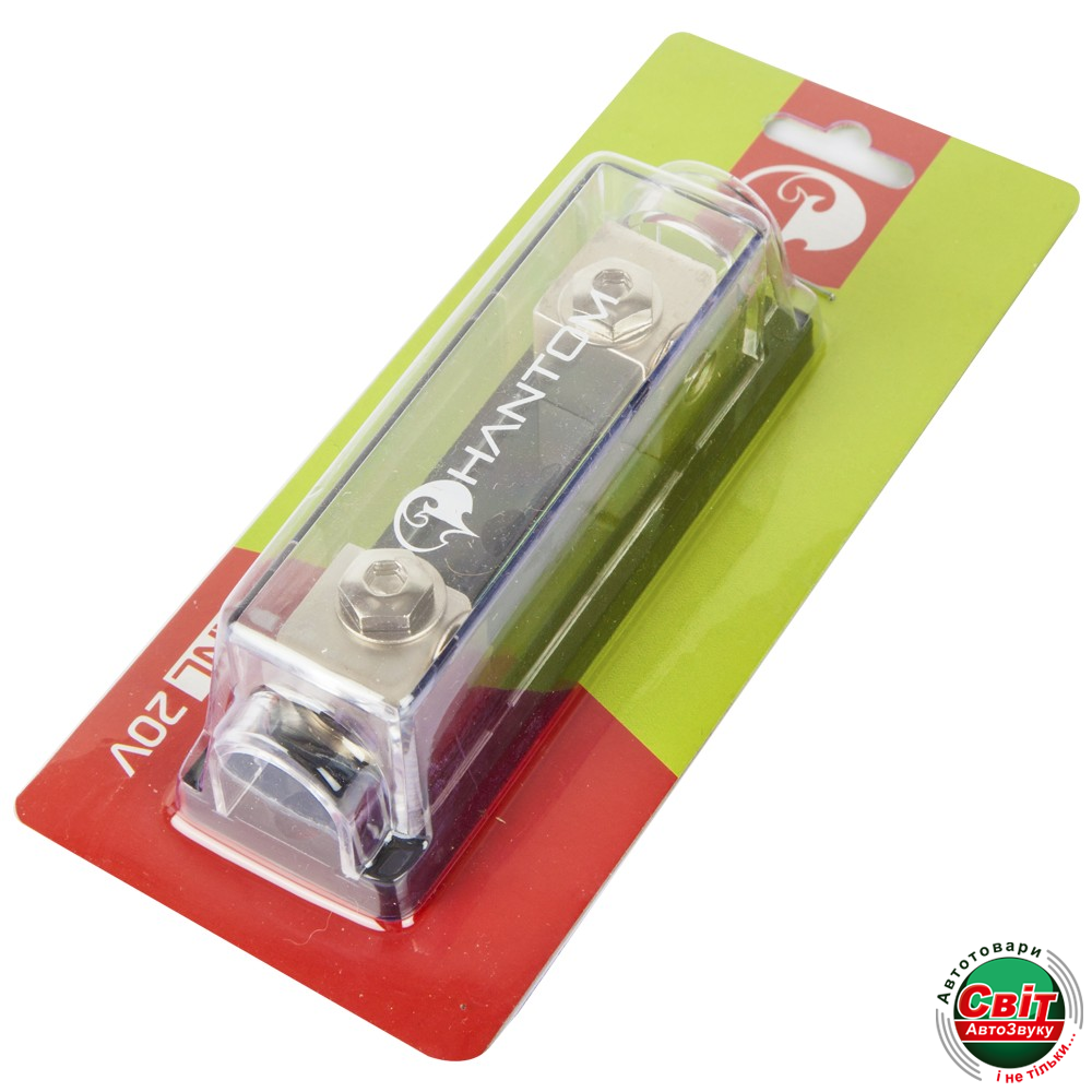 Збережник запобіжника Phantom ANL20VКвадратна колба-держувач для запобіжника типу ANL з нерухомими твердими елементами. Вхід 0GA-4GA (53x.м-21,2кв.)/ вихід 0GA-4GA (53x.м-21,2кв.)