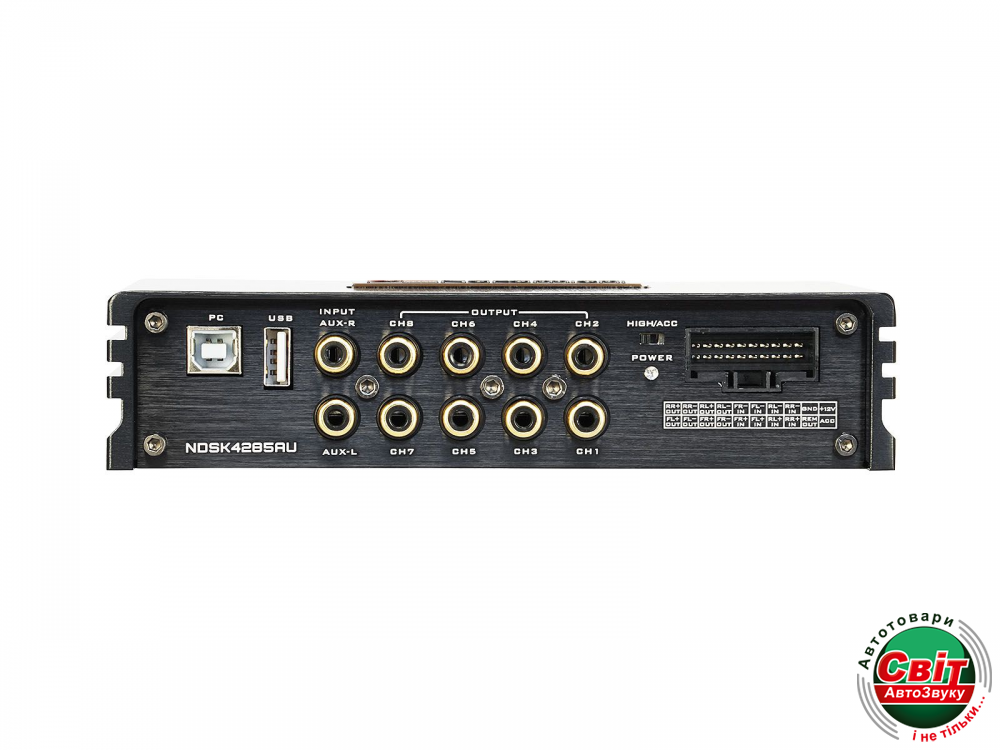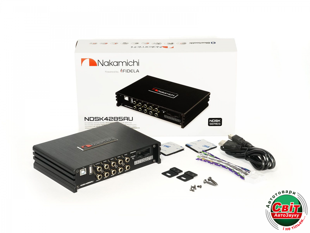 Процесор-підсилювач Nakamichi NDSK4285AUАвтомобільний DSP-підсилювач. Підсилювач – це ядро вашої звукової системи. В епоху цифрових технологій звичайного підсилювача недостатньо. Обробка аудіо-сигналу тепер може здійснюватися програмно. DSP обробка цифрового сигналу - це ціла наука, що використовує потужності комп'ютерів для точного настроювання звуку шляхом вимірювання, фільтрації та стиснення аналогових сигналів, що знімаються з джерела звуку.