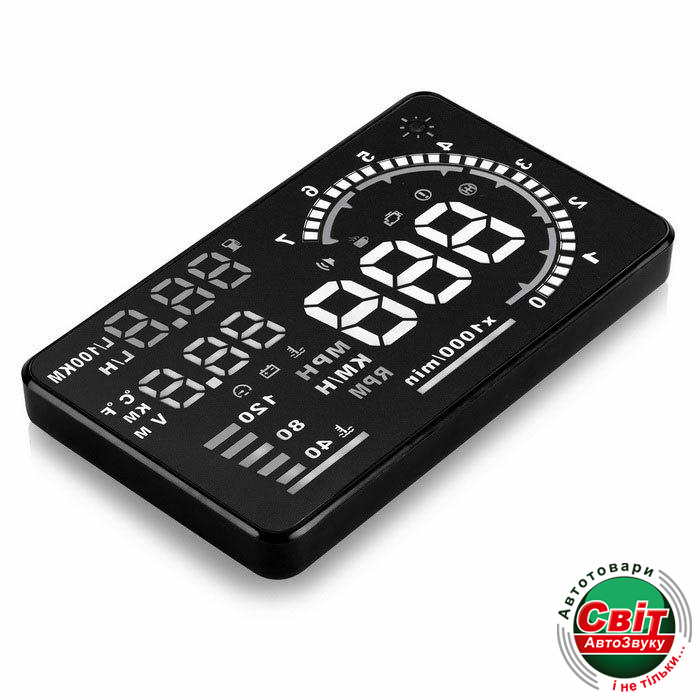 Проекційний дисплей Prology HDS-500Проекційний дисплей PROLOGY HDS-500 предназначен для отображения показаний приборов на лобовом стекле автомобиля, оснащенного диагностическим разъемом OBD-II. Устройство обеспечивает более безопасное вождение, поскольку устраняет необходимость водителя отвлекаться от дороги при просмотре информации на приборной панели.