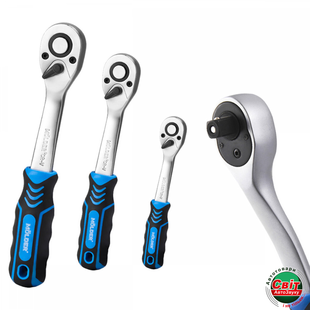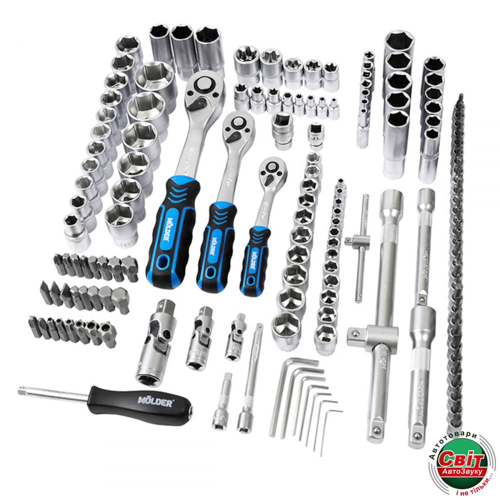 - ›Професійний набір інструментів в кейсі MOLDER 1/2', 1/4', 3/8' 72Т, CR-V, 151од. (MT60151)