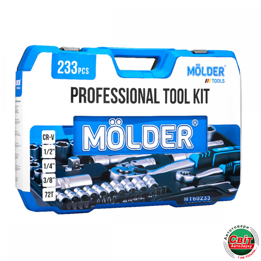 - ›Професійний набір інструментів в кейсі MOLDER 1/2', 1/4', 3/8' 72Т, CR-V, 233од. (MT60233)