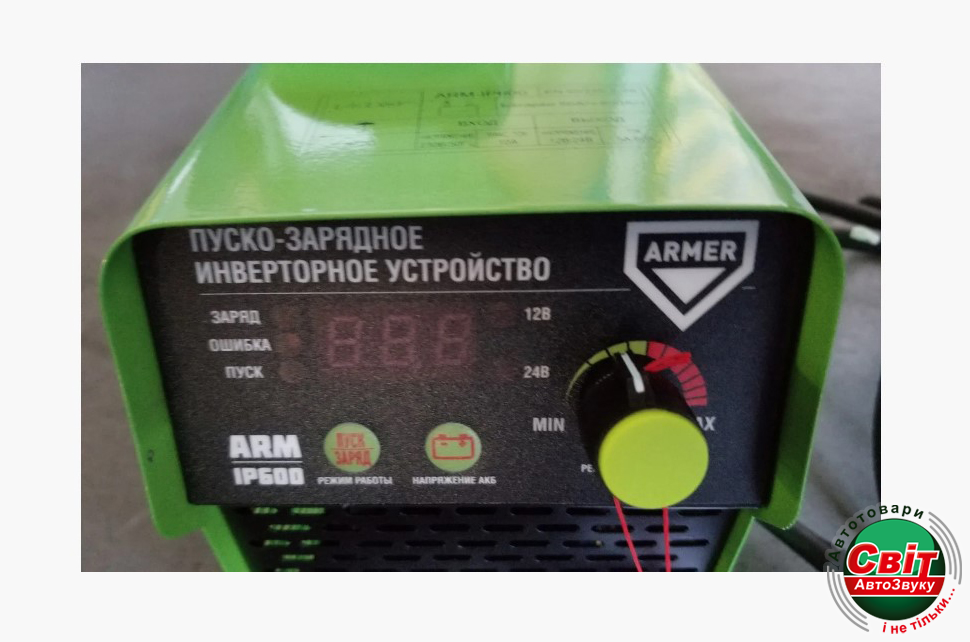 Пуско зарядний пристрій ARMER ARM-IP600Зарядно-пусковий пристрій ARMER (ARM-IP600) являє собою однофазне зарядний пристрій інверторного типу з додатковою функцією допоміжного запуску двигуна.