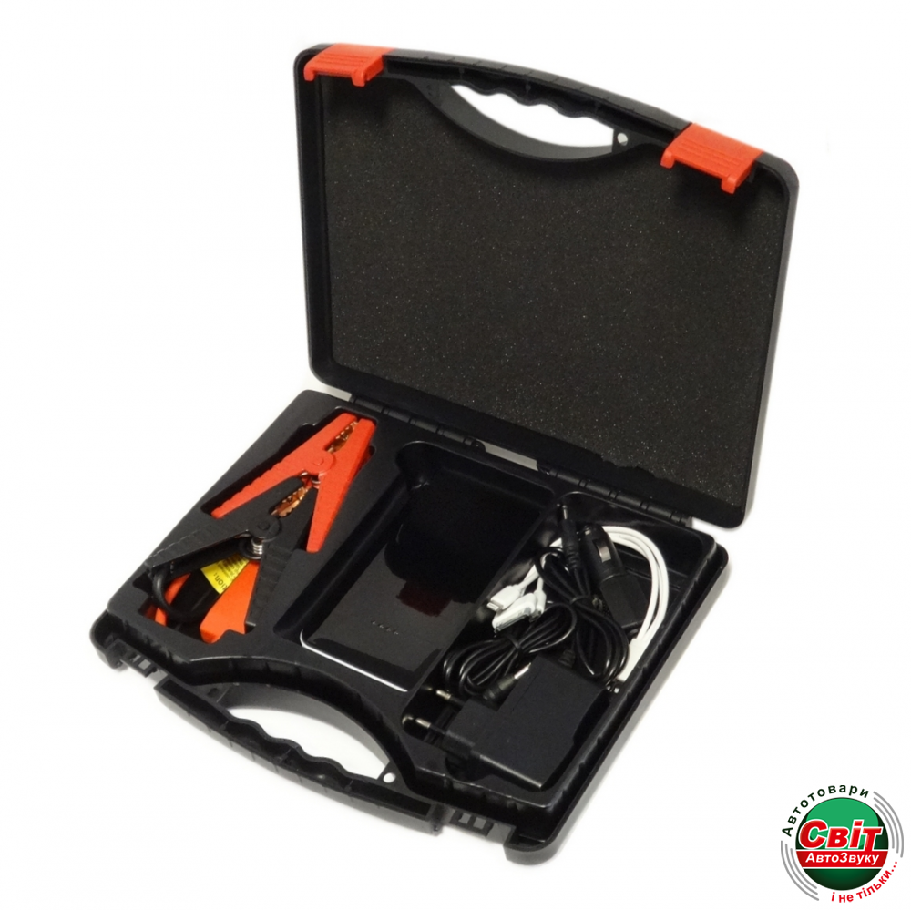 В комплект входит универсальный переходник для заряда телефона, зажимы для аккумулятора, переходник в прикуриватель автомобиля, а также адаптер для зарядки от сети в 220В.