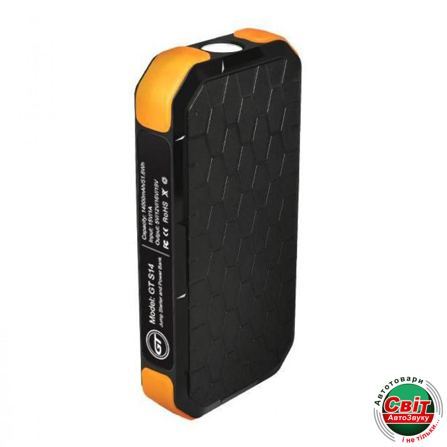 Пуско зарядний пристрій GT S14 newПусковое устройство GT S14 всегда выручит в непредвиденной ситуации, просто и без розеток решив проблему разряженного АКБ машины или гаджета. Преимущества GT S14 – повышенная емкость батареи 14000 мАч, широчайший выбор подключаемого оборудования и компактные габариты корпуса.