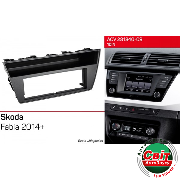 Рамка перехідна ACV 281340-09 Skoda Fabia 2014+Перехідна рамка для установки автомагнітоли