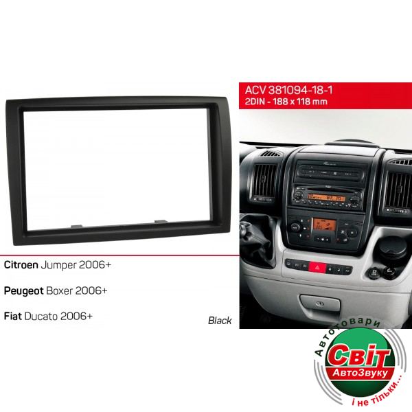 - ›Рамка перехідна ACV 381094-18-1 Citroen Jumper, Peugeot Boxer, Fiat Ducato