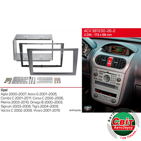 Рамка перехідна ACV 381230-26-2 OpelПерехідна рамка для установки автомагнітоли