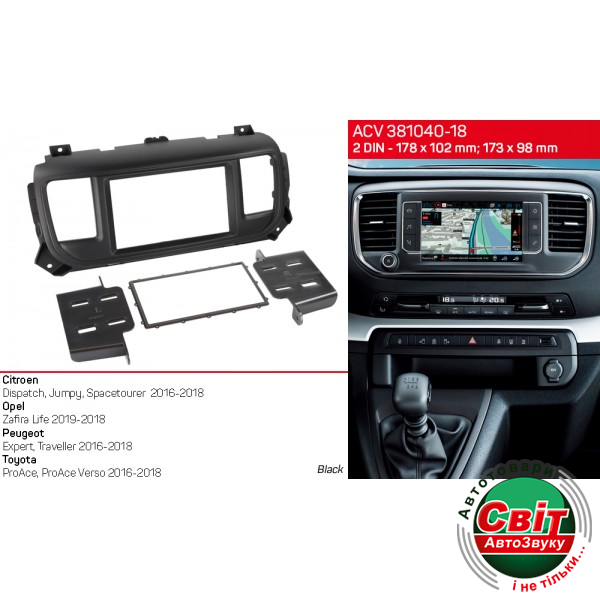 • ACV 381040-18: 2 DIN - 178 x 102 mm; 173 x 98 mm