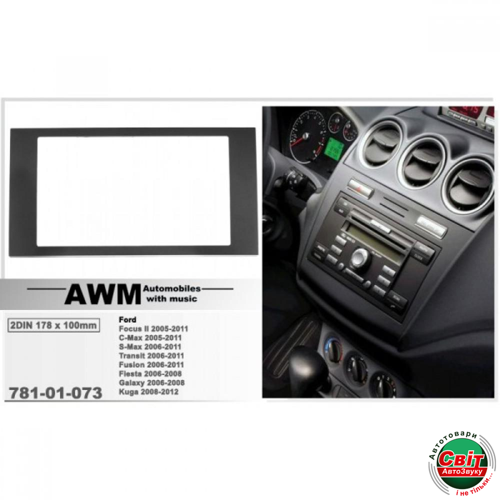 - ›Рамка перехідна AWM 781-01-073 Ford Focus II / C-Max2005+, S-Max / Fusion / Transit 2