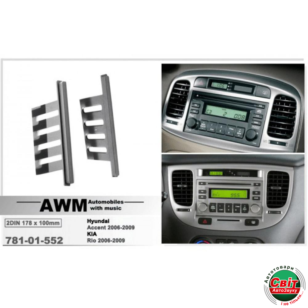 - ›Рамка перехідна AWM 781-01-552 Hyundai Accent/KIA Rio 06-09/Sportage ->09 2DIN (173x98)