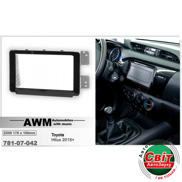 Рамка перехідна AWM 781-07-042 Toyota Hilux 2015 2DINПерехідна рамка для установки автомагнітоли: 2DIN / 178x100 mm