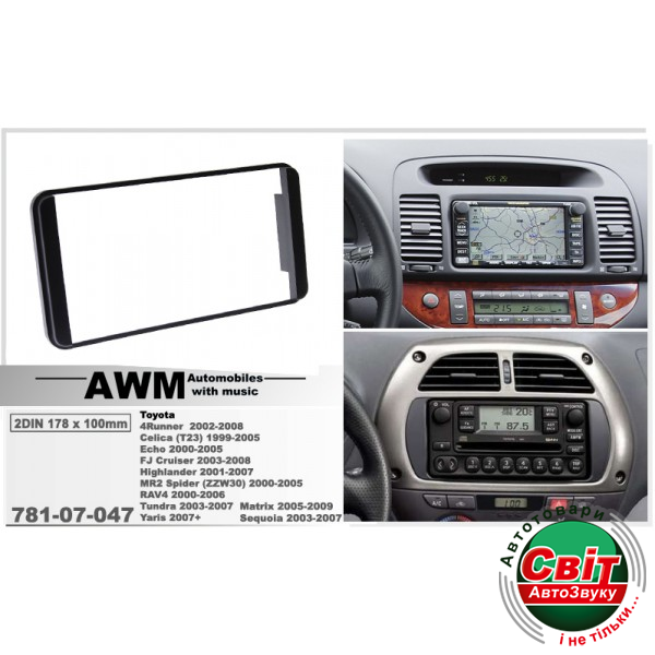 Рамка перехідна AWM 781-07-047 Toyota Multi Kit For double DIN (100x178)Перехідна рамка для установки автомагнітоли: 2DIN / 178x100 mm