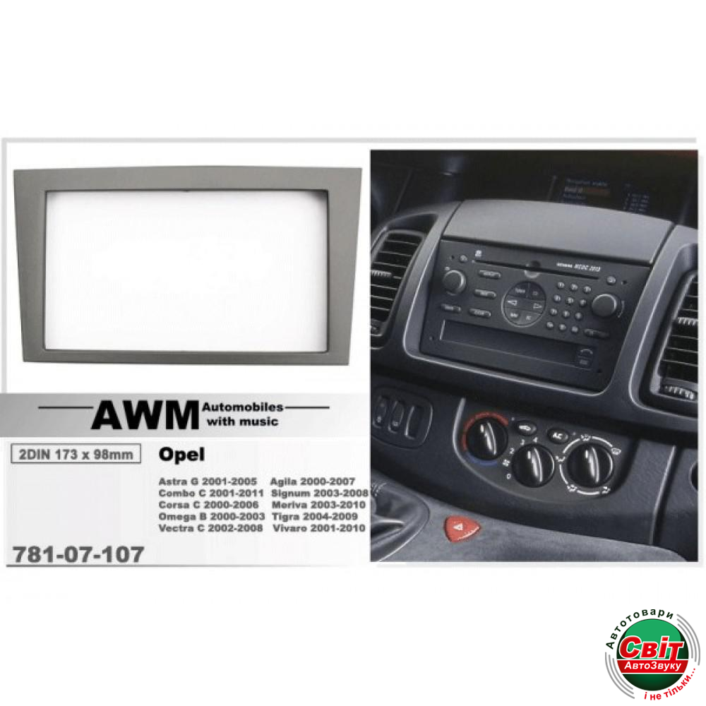 Технічні характеристики Перехідна рамка Opel Agila, Astra, Combo, Corsa, Meriva, Omega, Signum, Tigra, Vectra, Vivaro (AWM 781-07-107)