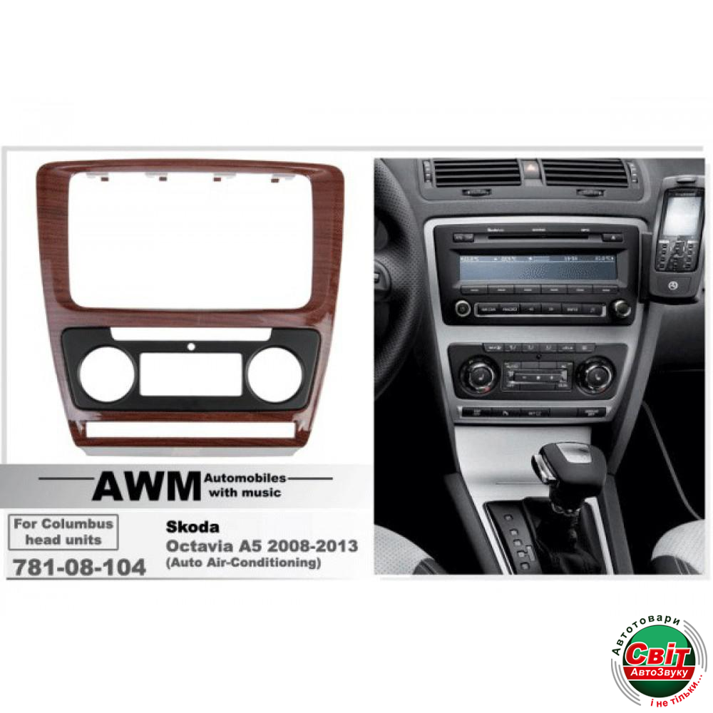 Рамка перехідна AWM 781-08-104 Skoda Octavia 2008-2013 (Auto Air Cond) WoodenПерехідна рамка від відомого виробника автомобільних аксесуарів - компанії AWM.