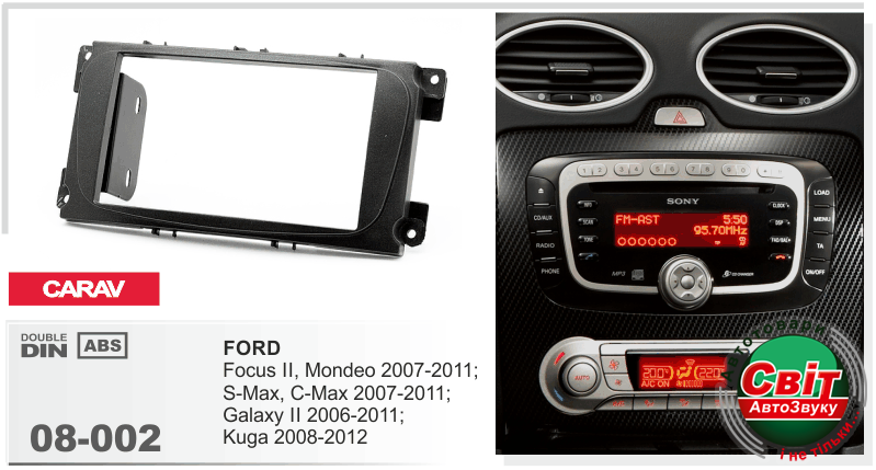 - ›Рамка перехідна Carav 08-002 Ford Focus II/Mondeo/S-Max/С-Max07+/Fiesta/Fusion/Galaxy II 2DIN