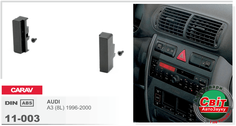 Рамка перехідна Carav 11-003 Audi A3 96-00 1DINПЕРЕХІДНА РАМКА ДЛЯ УСТАНОВКИ АВТОМАГНІТОЛИ CARAV 11-003: 1 DIN / бічні вставки