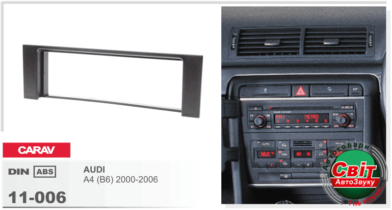 Рамка перехідна Carav 11-006 Audi A4 1DINПЕРЕХІДНА РАМКА ДЛЯ УСТАНОВКИ АВТОМАГНІТОЛИ CARAV 11-006: 1 DIN / 182 x 53 mm