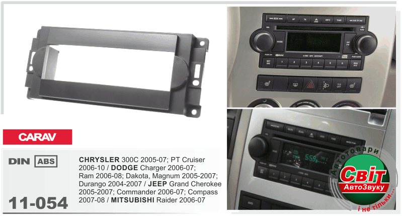 Рамка перехідна Carav 11-054 Chrysler 300C 2004-gt; 1DINПЕРЕХІДНА РАМКА ДЛЯ УСТАНОВКИ АВТОМАГНІТОЛИ CARAV 11-054: 1 DIN / 170 x 45 mm