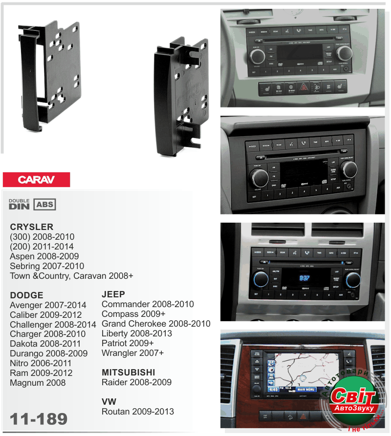 - ›Рамка перехідна Carav 11-189 Chrysler/Dodge/Jeep 2DIN