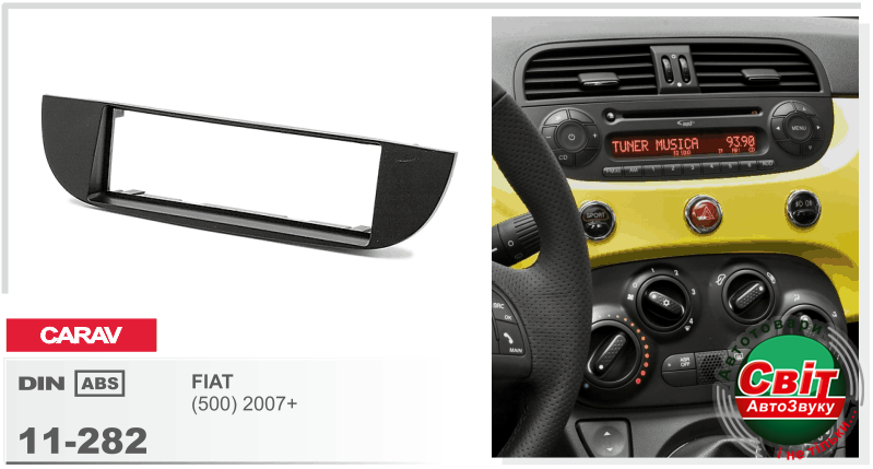 Рамка перехідна Carav 11-282 Fiat (500) 07+ 1DINПЕРЕХІДНА РАМКА ДЛЯ УСТАНОВКИ АВТОМАГНІТОЛИ CARAV 11-282: 1 DIN / 182 x 53 mm