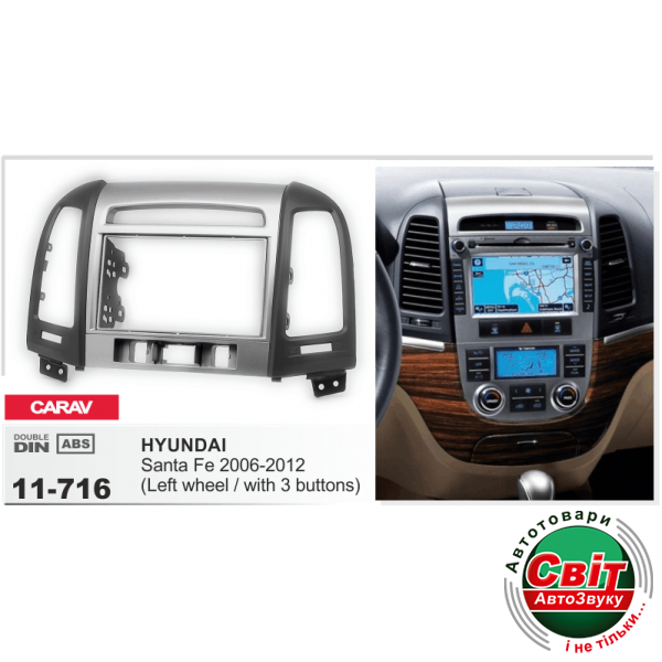 - ›Рамка перехідна Carav 11-716 Hyundai Santa Fe 2006-2012 (3 buttons)