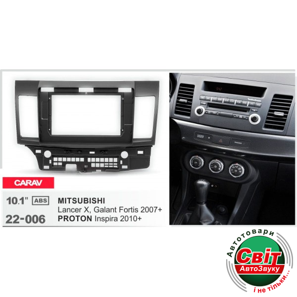 Рамка перехідна Carav 22-006 Mitsubishi Lancer XПерехідна рамка для установки автомагнітоли: CARAV 22-006: 10.1"- 250:241х146 mm