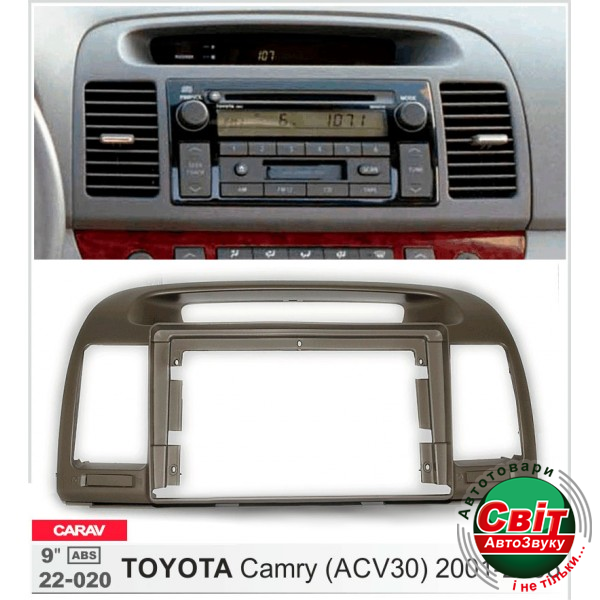 Рамка перехідна Carav 22-020 Toyota CamryПерехідна рамка для установки автомагнітоли: CARAV 22-020: 9" - 230/220 х 130 мм.