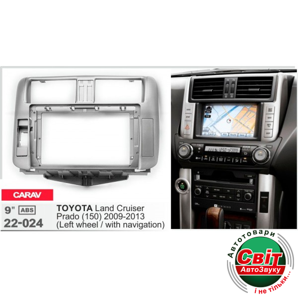 Рамка перехідна Carav 22-024 Toyota Land Cruiser PradoПерехідна рамка для установки автомагнітоли: CARAV 22-024: 9"- 230:220х130 mm.