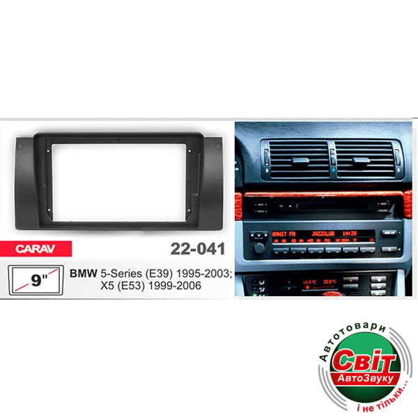 Рамка перехідна Carav 22-041 BMW 5, E39, X5, E53Перехідна рамка для установки автомагнітоли: Carav 22-041: 9"/230:220 x 130 мм
