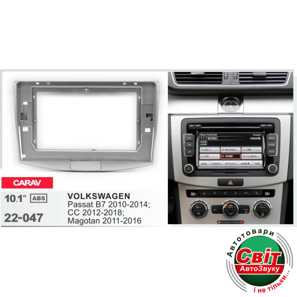 Рамка перехідна Carav 22-047 Volkswagen Passat B7, CC, MagotanПерехідна рамка для установки автомагнітоли: Carv 22-047: 10.1" - 250/241 x 146 мм